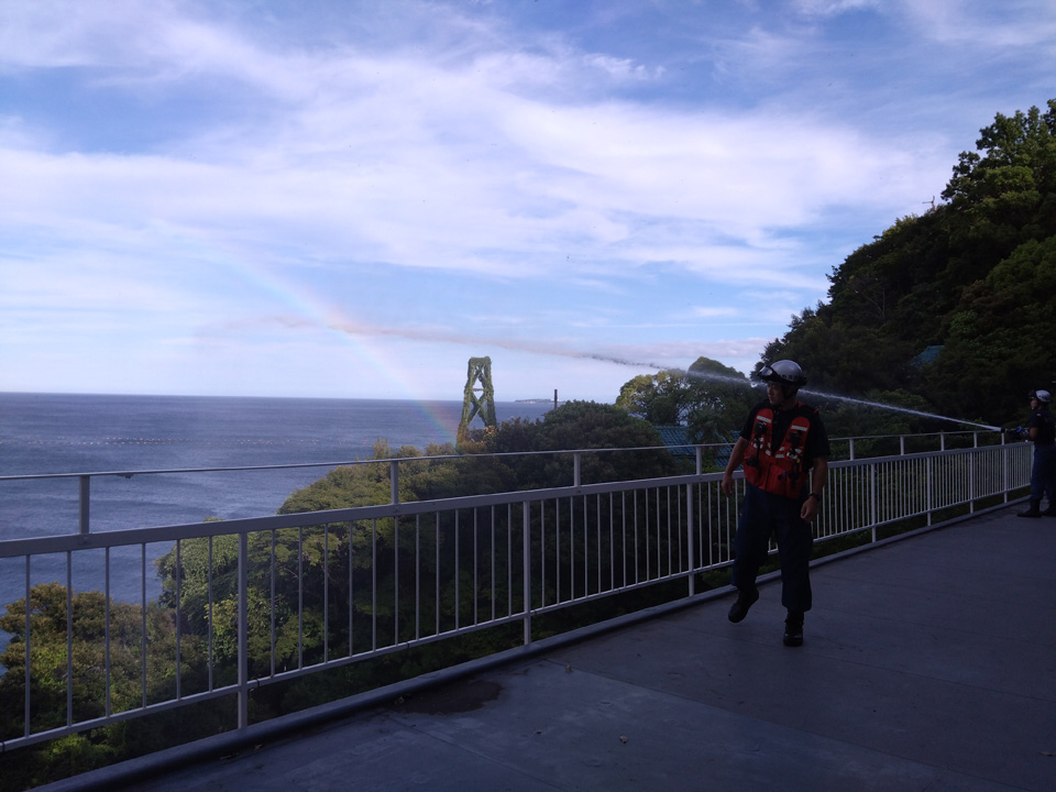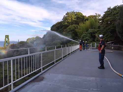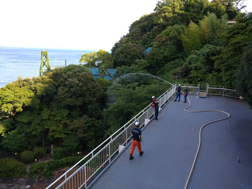 消防さんにお願いをして、当日に散水をお願いしています。