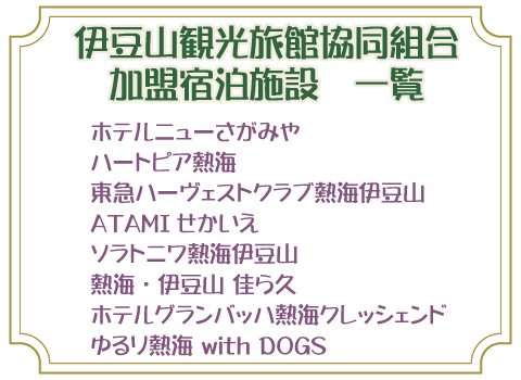 | ・伊豆山観光旅館協同組合加盟宿泊施設にて貸し出し(宿泊者のみ) | ||
