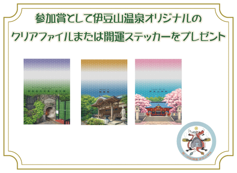| 参加賞 | 赤白二流ステッカーまたは伊豆山温泉オリジナルクリアファイル | |