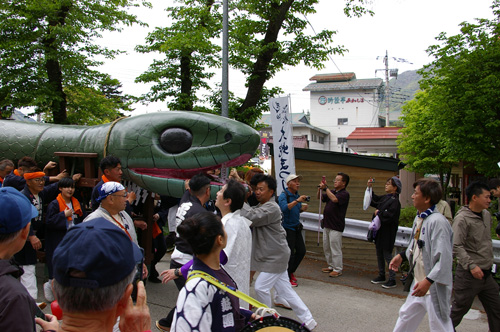 利根観光会館前を大蛇が通過していく様子