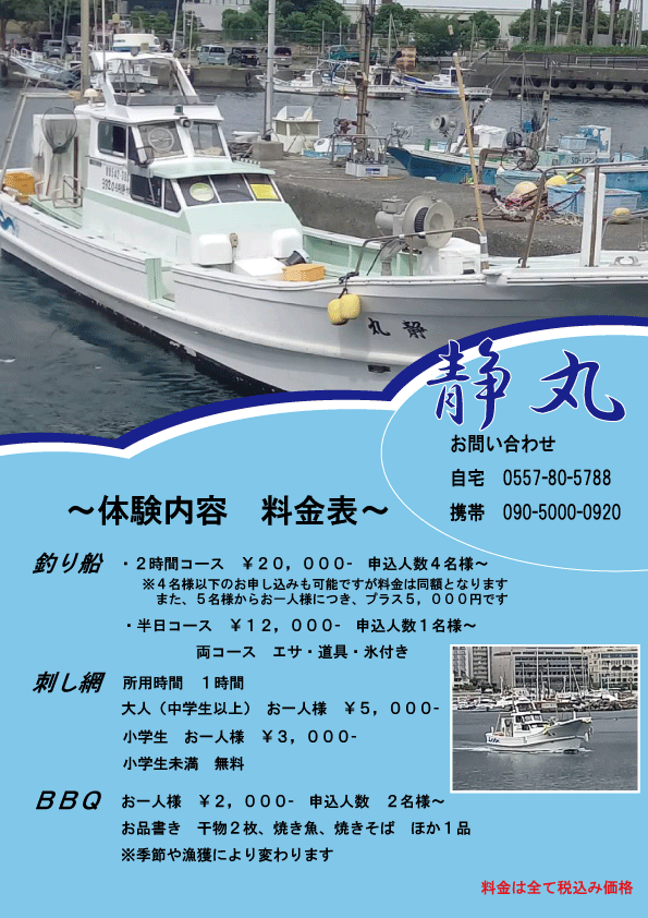 伊豆山の漁師「静丸」(しずまる)さんでは、釣り船、刺し網漁の体験ができます