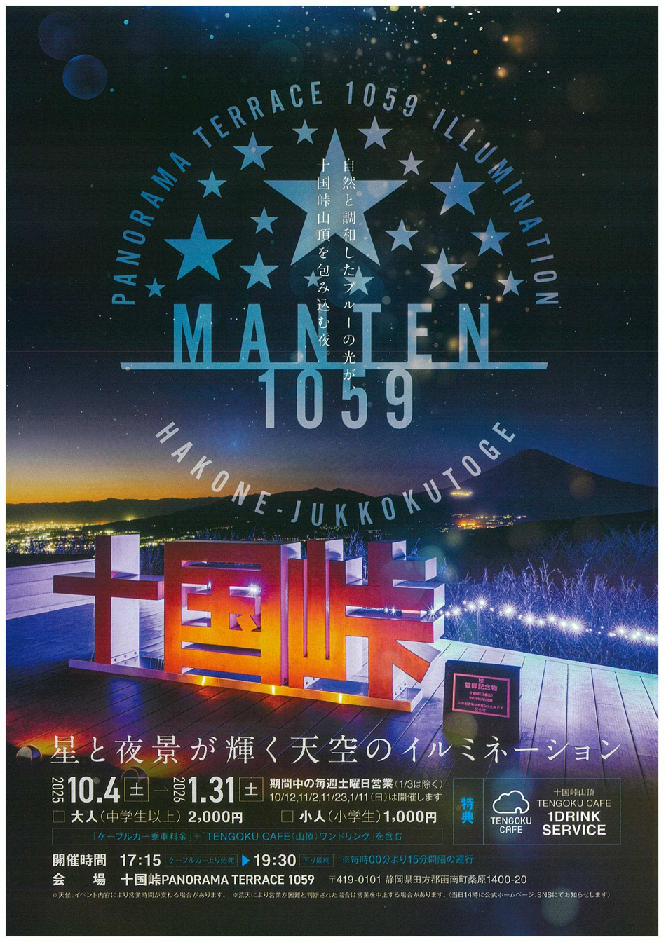 十国峠で開催されている、「MANTEN1059」のイベントチラシを頂きましたので、ご紹介いたします。